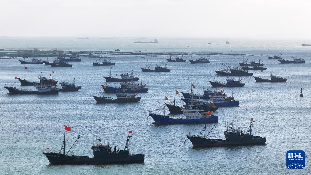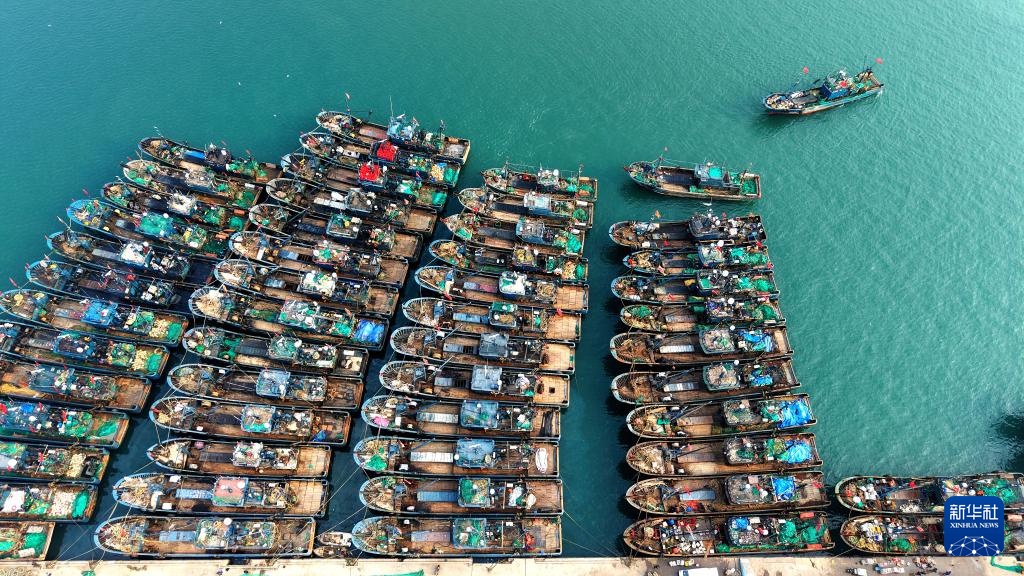 12月11日,在山东青岛西海岸新区积米崖渔港,渔船停靠在泊位上(无人机相片)。
