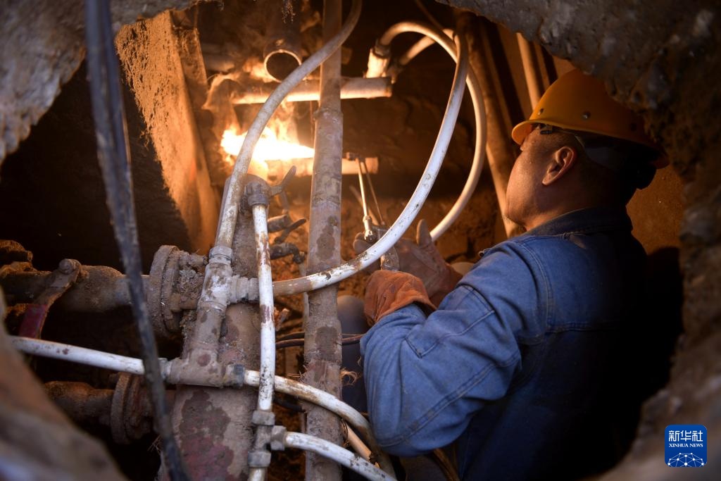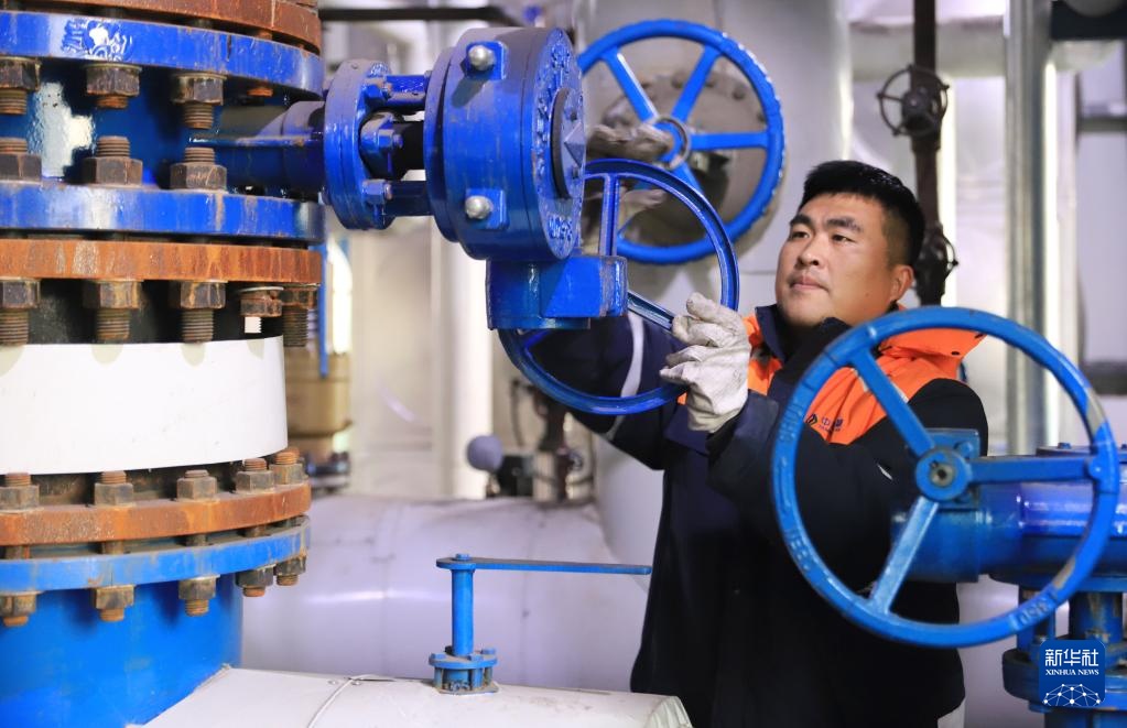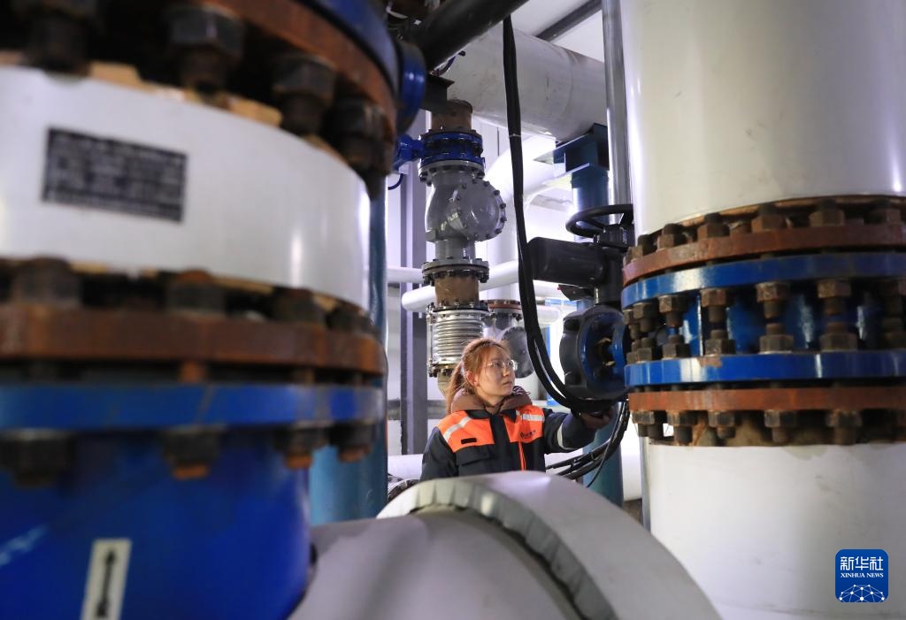12月10日,热力公司员工在河南省焦作市温县城区会集供暖首站对供热设备做查看。