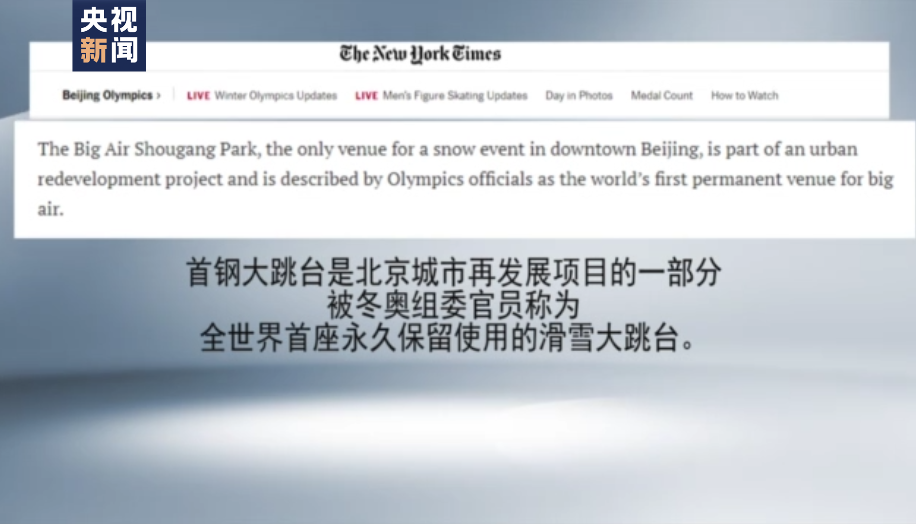 作为运动员腾空时的独特背景,首钢工业园区已停用的烟囱和冷却塔在赛事转播时的画面中十分醒目,凝结着北京冬奥组委践行可持续发展的办奥理念。美国《》2月8日发表文章强调,首钢大跳台是北京城市再发展项目的一部分,被冬奥组委官员称为全世界首座永久保留使用的滑雪大跳台。