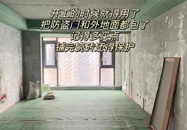为了保护我们用尽心思挑选的瓷砖,地面保护膜一定要有,如果师傅那里的保护膜是过薄没有保护效果的,那听我一句劝,最好是去自己买一组较厚的,记得多买点,都铺满!