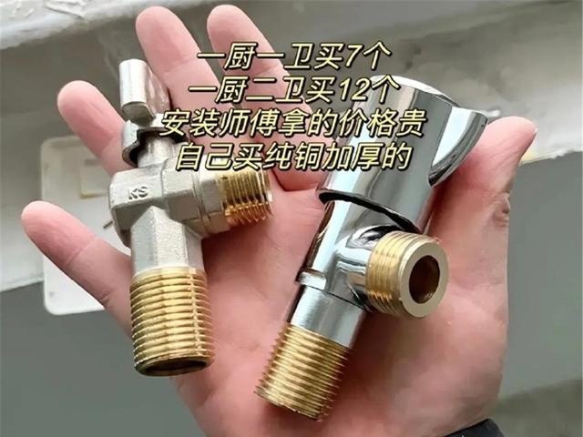 角阀这东西我给大家的建议是——买纯铜加厚的,看看自己家里的厨卫使用情况,一般卖角阀的也会告诉你,找安装师傅拿贵不说,质量也不一定可以保证。