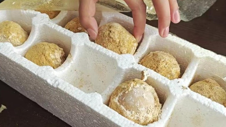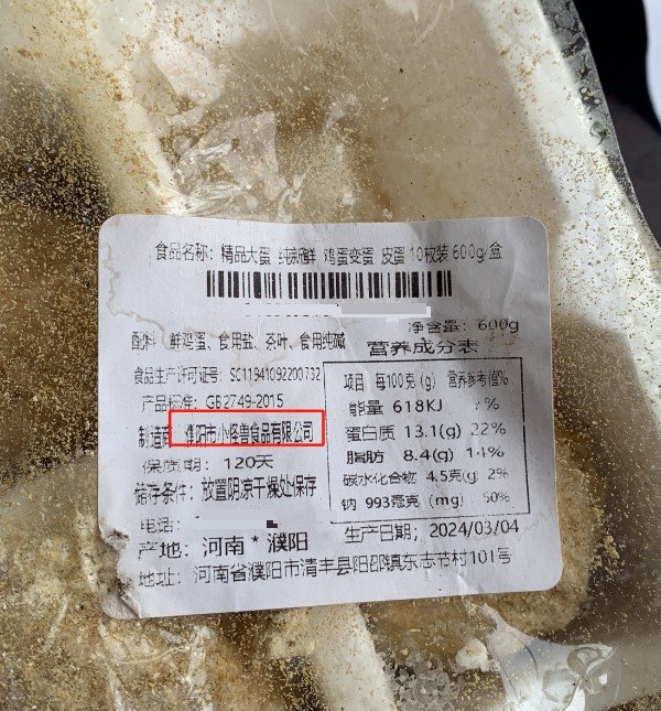 变蛋,又称灰包蛋、包蛋等,在河南、山东等地区广受欢迎。刘文所购买的变蛋配料表中显示,该食用商品的配料是鲜鸡蛋、食用盐、茶叶、食用纯碱,刘文向帮办记者表达了自己的猜测: “我怀疑是他们制作工艺的问题,可能是碱放多了。”
