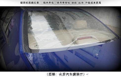 专家提醒消费者,在选择汽车隔热膜时必须格外慎重。除镜面反光膜外,很多其他劣质的滥膜也会影响到行车安全。一些不具备资质的商家以次充好,用低价吸引消费的人,贴膜后常常出现水泡、水波纹等现象都会影响到驾车安全。